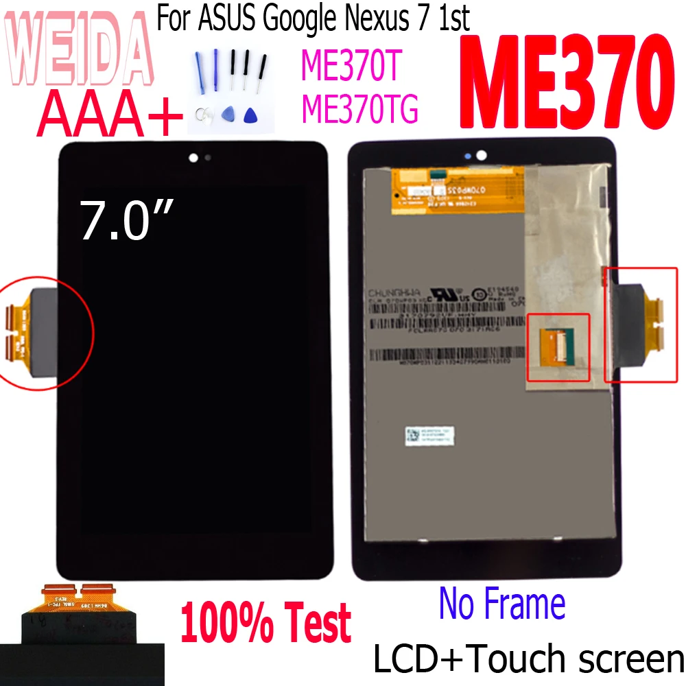 WEIDA, ЖК-дисплей 7,0 дюйма с сенсорной панелью в сборе для Asus Google Nexus 7 2012 1-го поколения Me370 ME370T ME370TG, тест на 100%