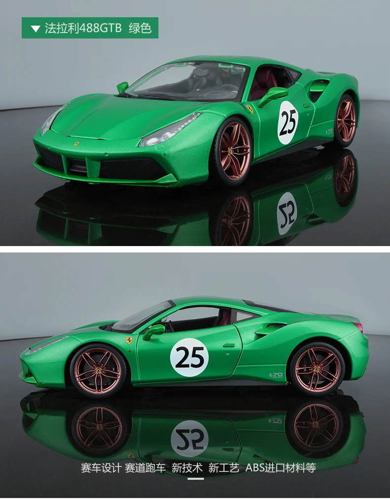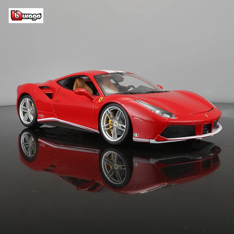 Модель автомобиля Bburago, 1:18 Ferrari 488 10-я годовщина, красная версия, модель из сплава, украшение автомобиля, коллекционная Подарочная игрушка