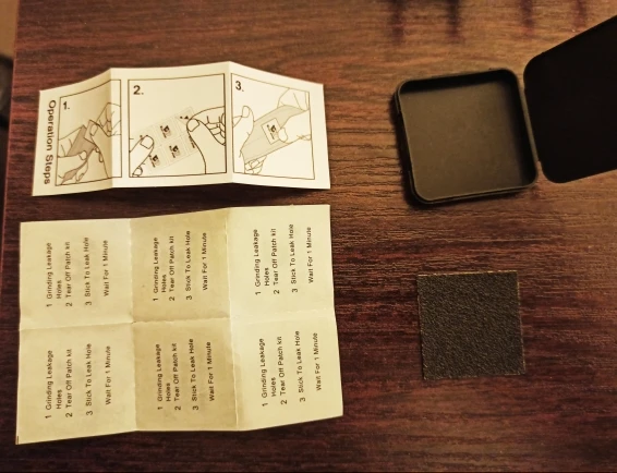 Заказывал 25 февраля, получил в Волгограде 7 апреля, на вид вызывают сомнения, что будут надёжно заклеивать дырку, на вид похоже на обычный скотч, размер маленький, для сравнения на фото зажигалка, по отзывам несколько человек писали, что клеит хорошо, мне больше кажется, что только как временная заплатка, доехать до места ремонта, пока не попробуешь не узнаешь.