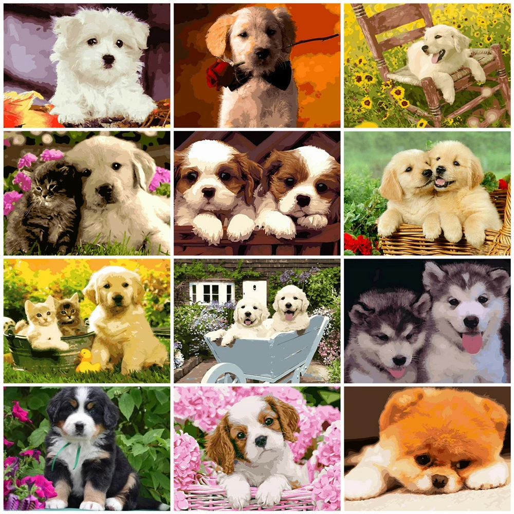 HUACAN живопись маслом по номерам собака комплект для животных рисо...
