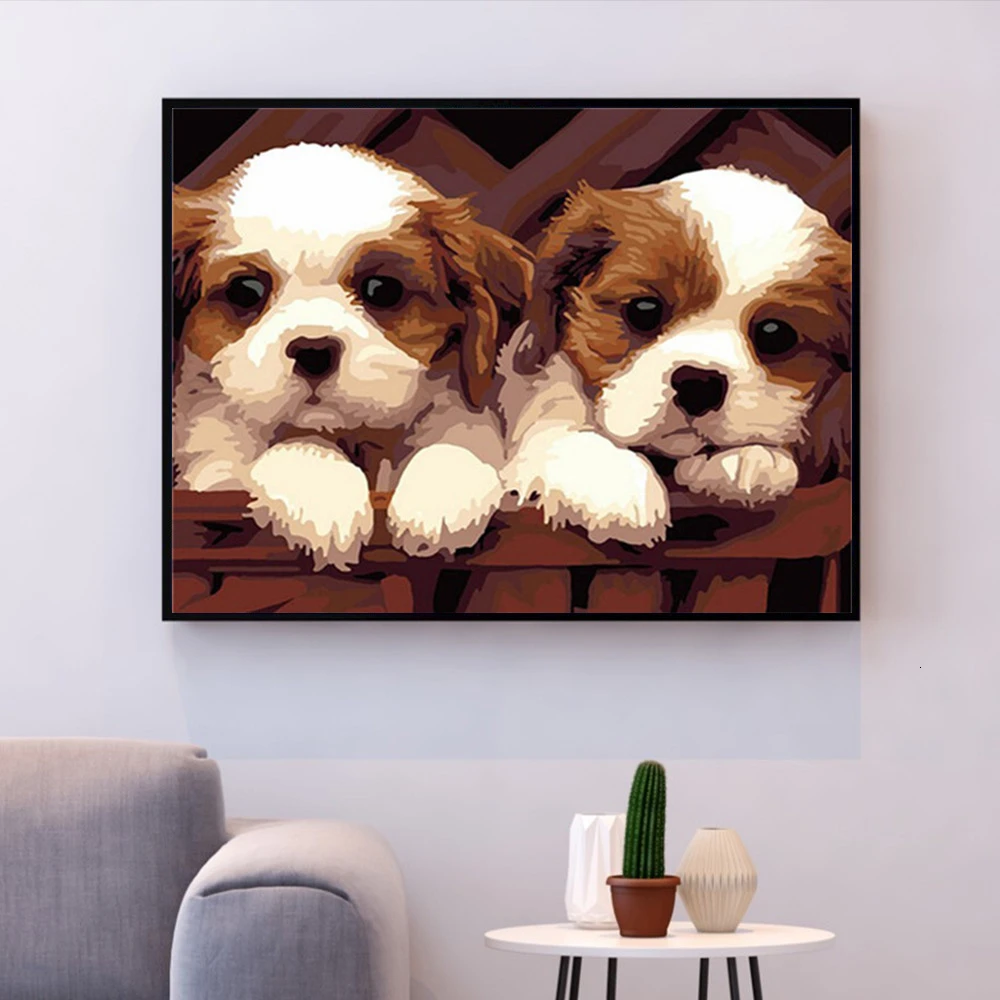 HUACAN картина по номеру животное собака рисунок на холсте картина DIY Подарочный набор настенная живопись ручная роспись украшение дома