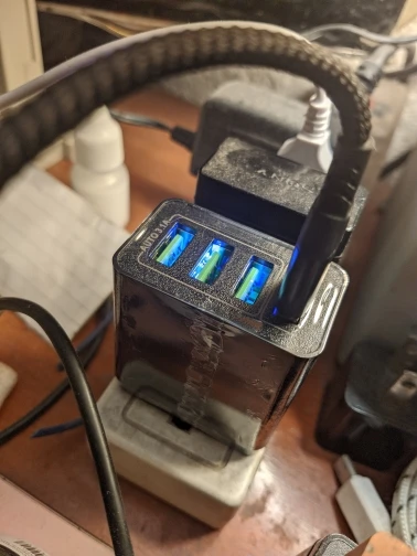 Круто что здесь 4 юсб. iPhone 11 не заряжается быстрой зарядкой, только в обычном режиме. Видимо это ЗУ поддерживает быструю зарядку только андройдов. Очень яркая подсветка юсб портов, близко к кровати на ночь не оставить. Сильно греется при полной нагрузке.