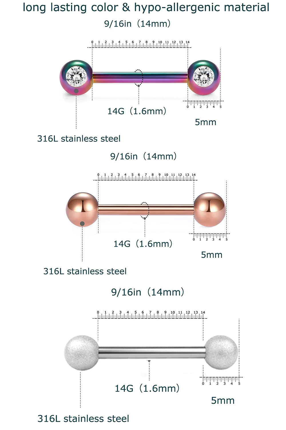 2 шт., держатель для пирсинга из нержавеющей стали, 14 г