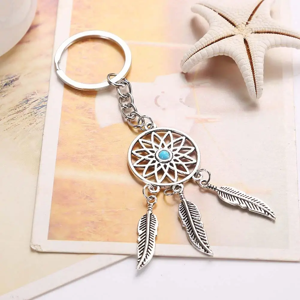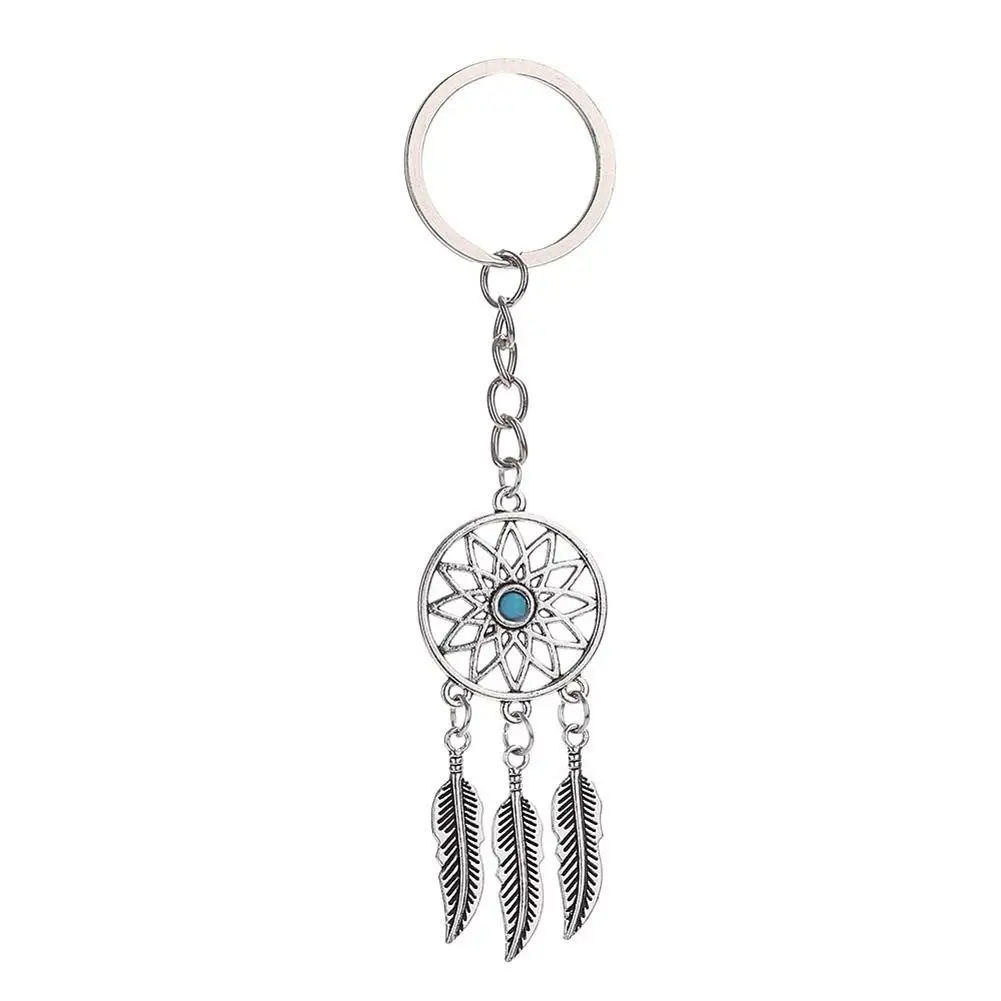 2018 moda sueño catcher tono clave cadena plata anillo pluma borlas llavero para regalo