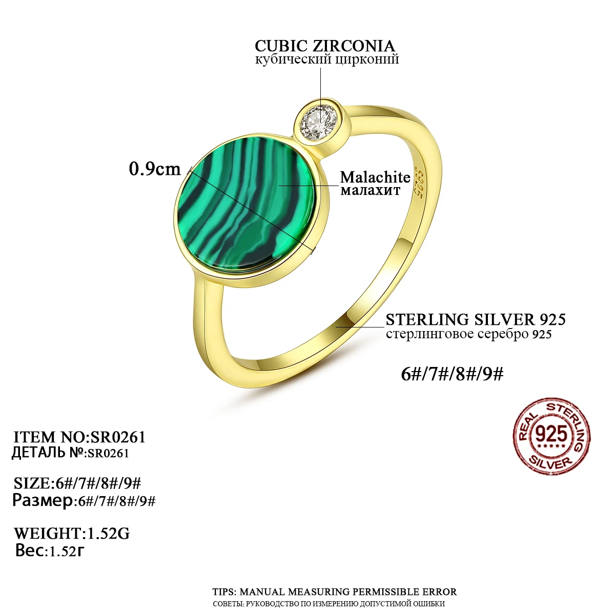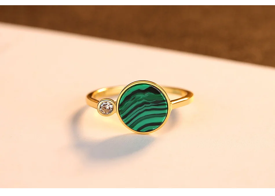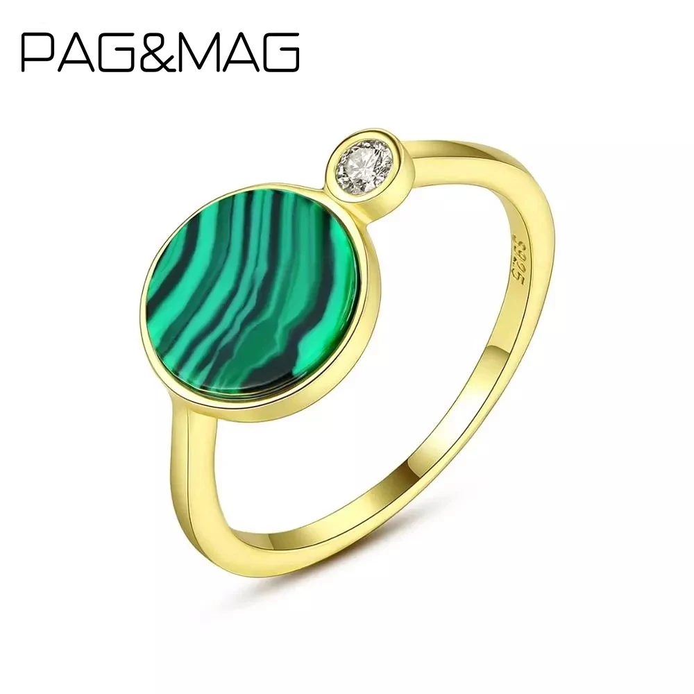 Женское кольцо с натуральным малахитовым камнем PAG MAG, 925 пробы Серебряное очаровательное ювелирное изделие, 925 пробы, SR0261