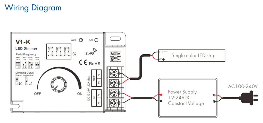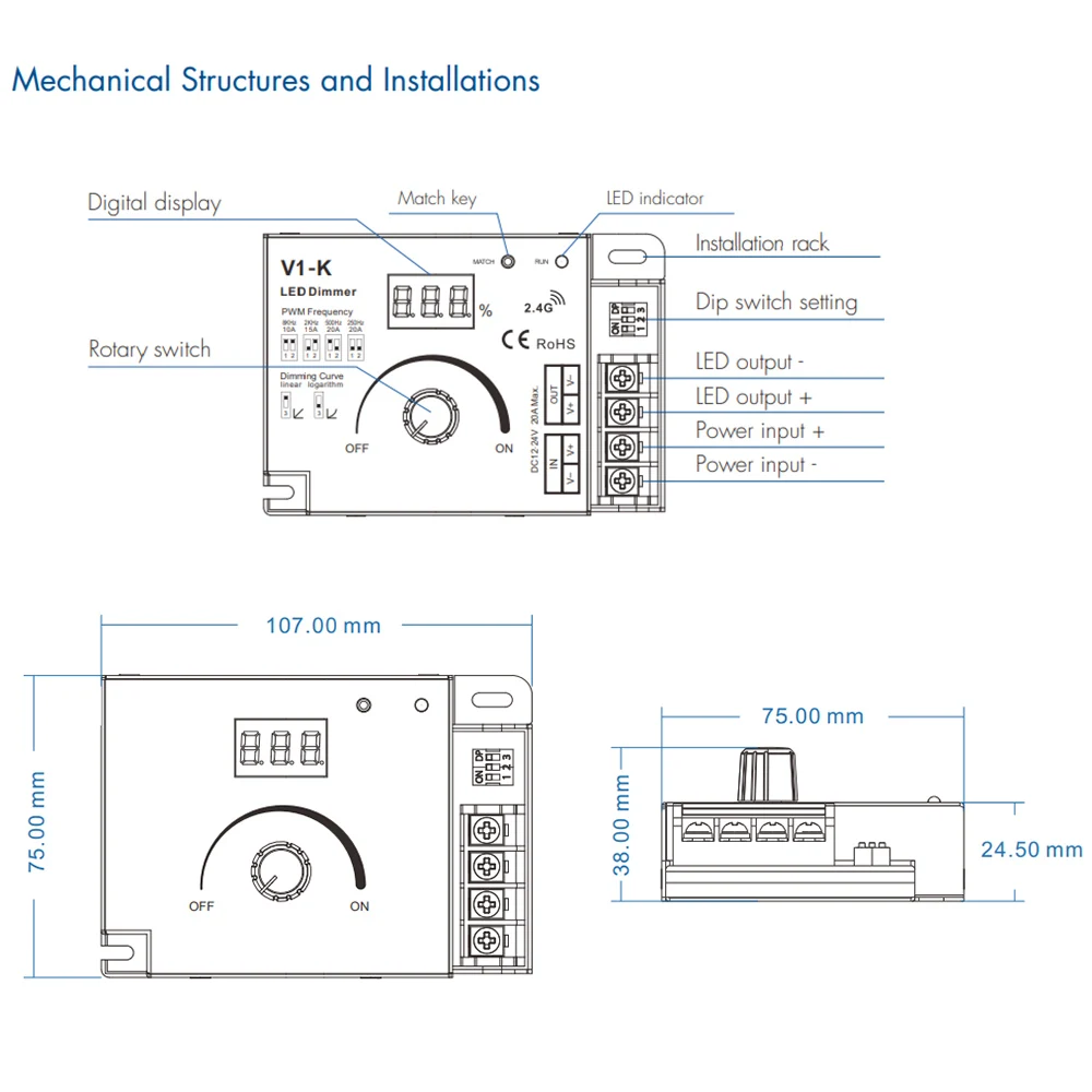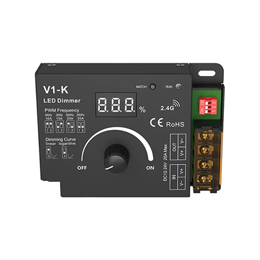 Поворотный Светодиодный диммер 12 в 24 В постоянного тока ШИМ регулируемая ручка беспроводной диммер 20A контроллер для одного цвета светодиодный светильник V1-K