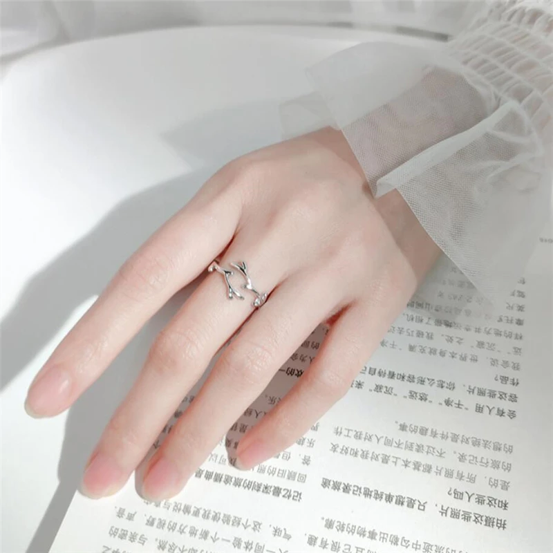 Простые милые серебряные женские открытые кольца с изменяемым размером и памятью стельки SRI433