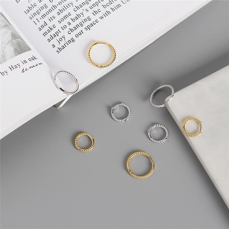 Женские серьги-кольца из настоящего стерлингового серебра 925 пробы, золотые серьги-кольца для девушек, Серьги Для Пирсинга Ушей в стиле панк, женские серьги-кольца с витой кабельной линией
