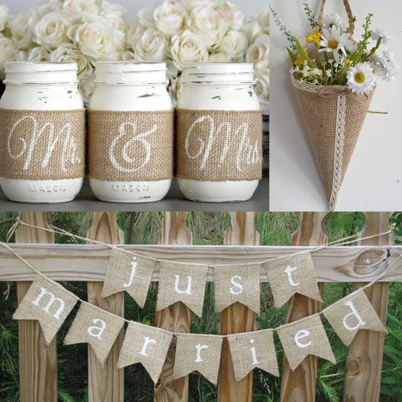 Деревенский Свадебный декор 2 м натуральный джут мешковины Hessian ремесла DIY конопляная лента Рождественский домашний декор стол декоративная подарочная упаковка