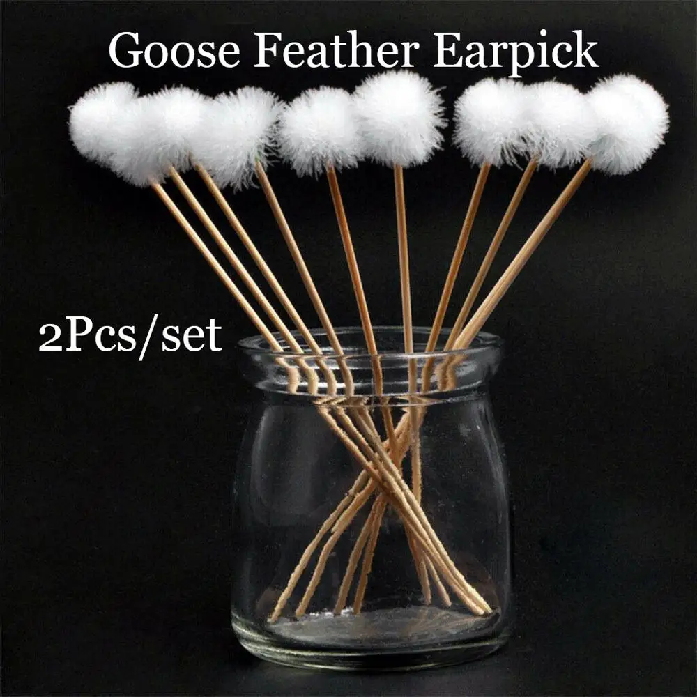 2 шт. гусиное перо для удаления ушей для взрослых с бамбуковой ручкой, инструменты для выкопания ушей, ложка для очистки, палочка для ухода за здоровьем, уход за ушами
