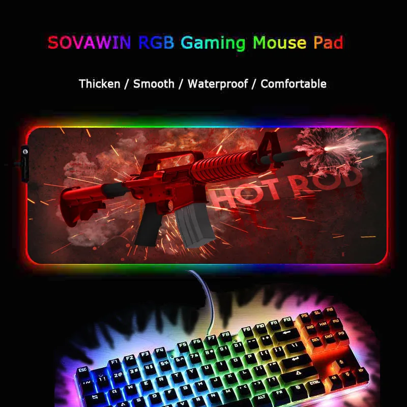 Игровой проводной коврик для мыши XGZ Gun с RGB подсветкой, USB, CSGOj