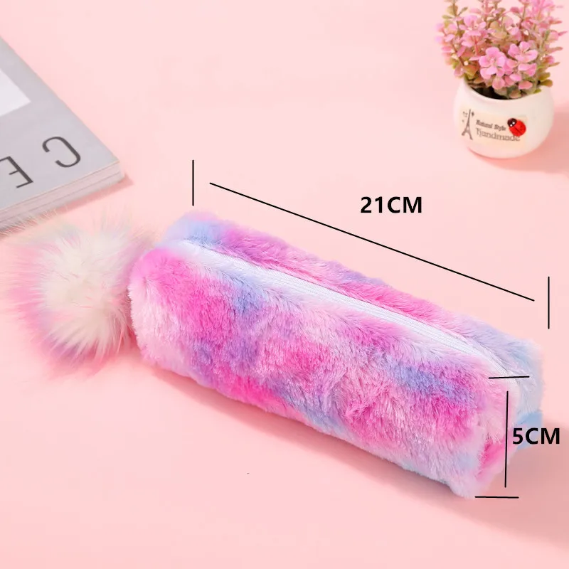 Мягкая Плюшевая Радужная сумка для шариковых ручек и волос, милый к...