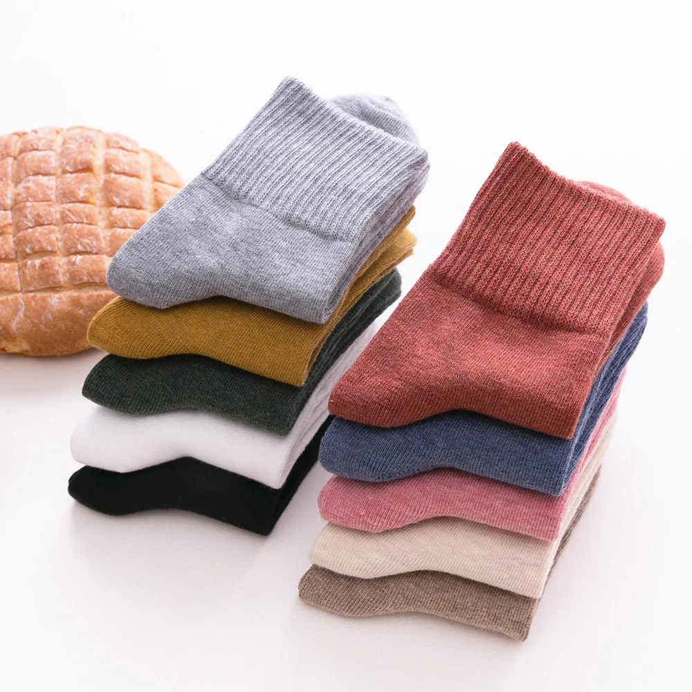 Носки женские, однотонные, из 100% хлопка, Осень-зима