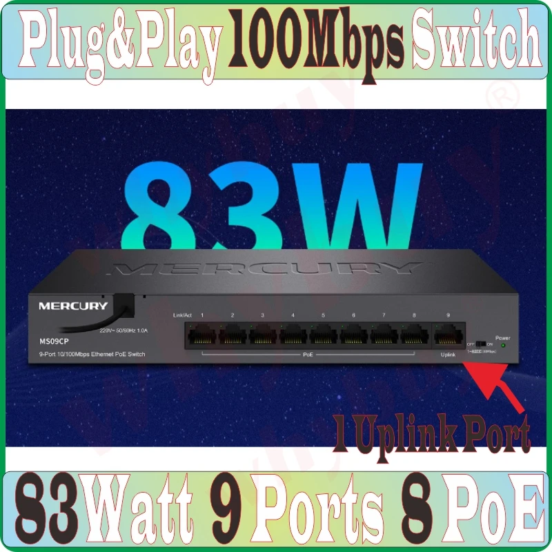 MERCURY 9-портовый Быстрый коммутатор PoE 83 Вт MS09CP RJ45 полныйп...