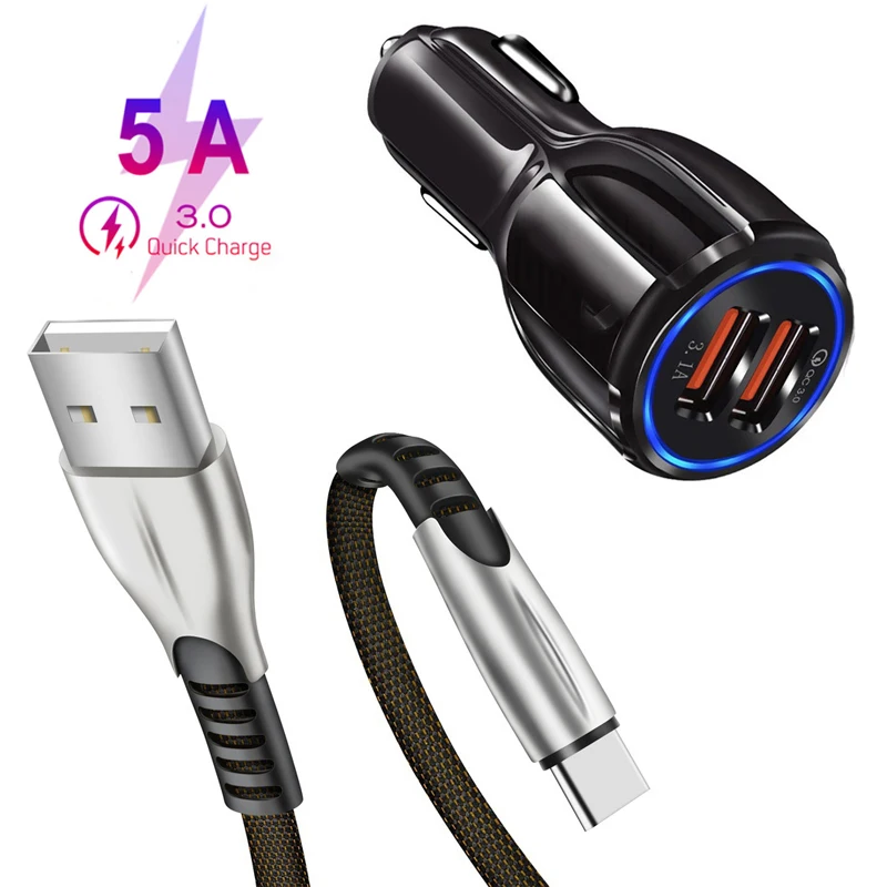 QC 3,0 Автомобильное зарядное устройство Тип C USB супер быстрый зарядный кабель для передачи данных для Samsung A20E A40 A50 A5 A7 2017 Huawei P30 P20 lite Mate 30 20