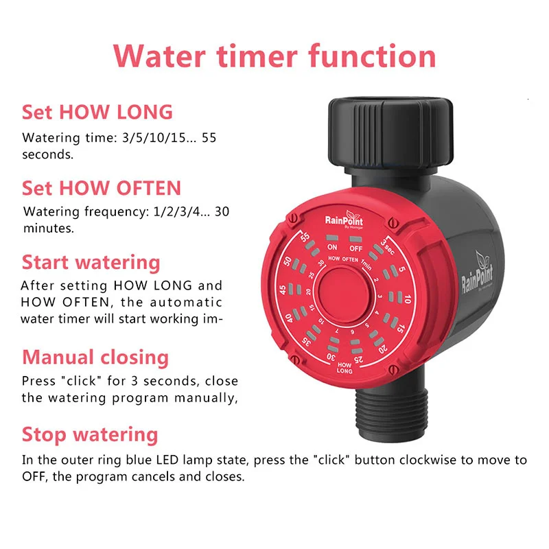 Он запрограммирован на время вкл/выкл экономит воду, идеально подходящую для засухов и условий, не связанных с засухой.