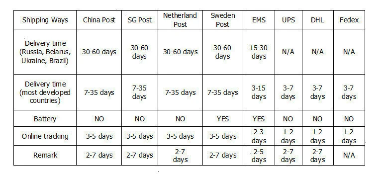 Мы принимаем оплату Alipay, T/T, Western Union и Visa. За исключением Alipay, плата преобразования находится на стороне клиента. Пожалуйста, оплатите заказ в течение 3 дней, и мы организуем доставку в течение 1-2 дней.