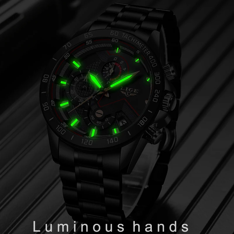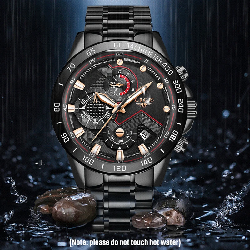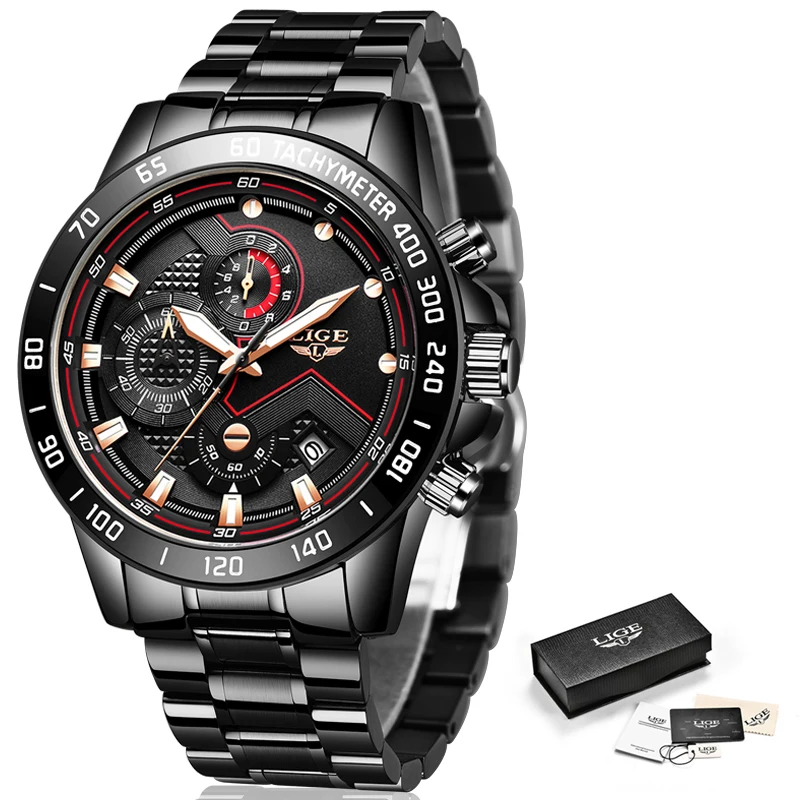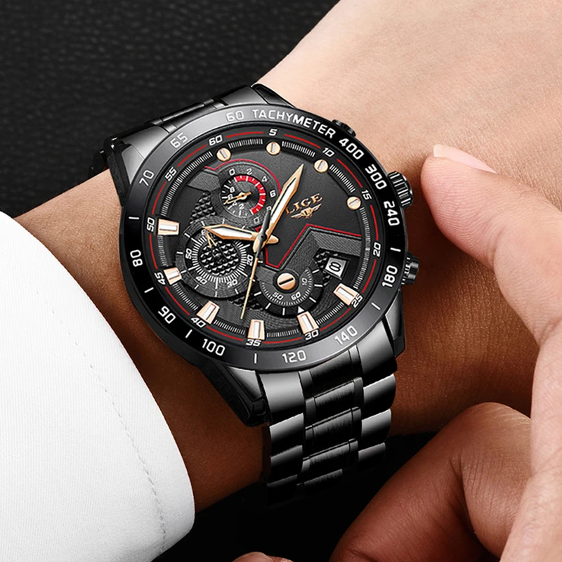 Часы мужские кварцевые, из нержавеющей стали, с хронографом, черные