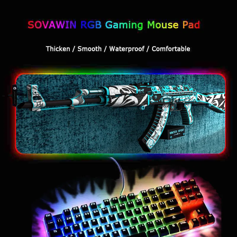 Игровой проводной коврик для мыши XGZ Gun с RGB подсветкой, USB, CSGOj
