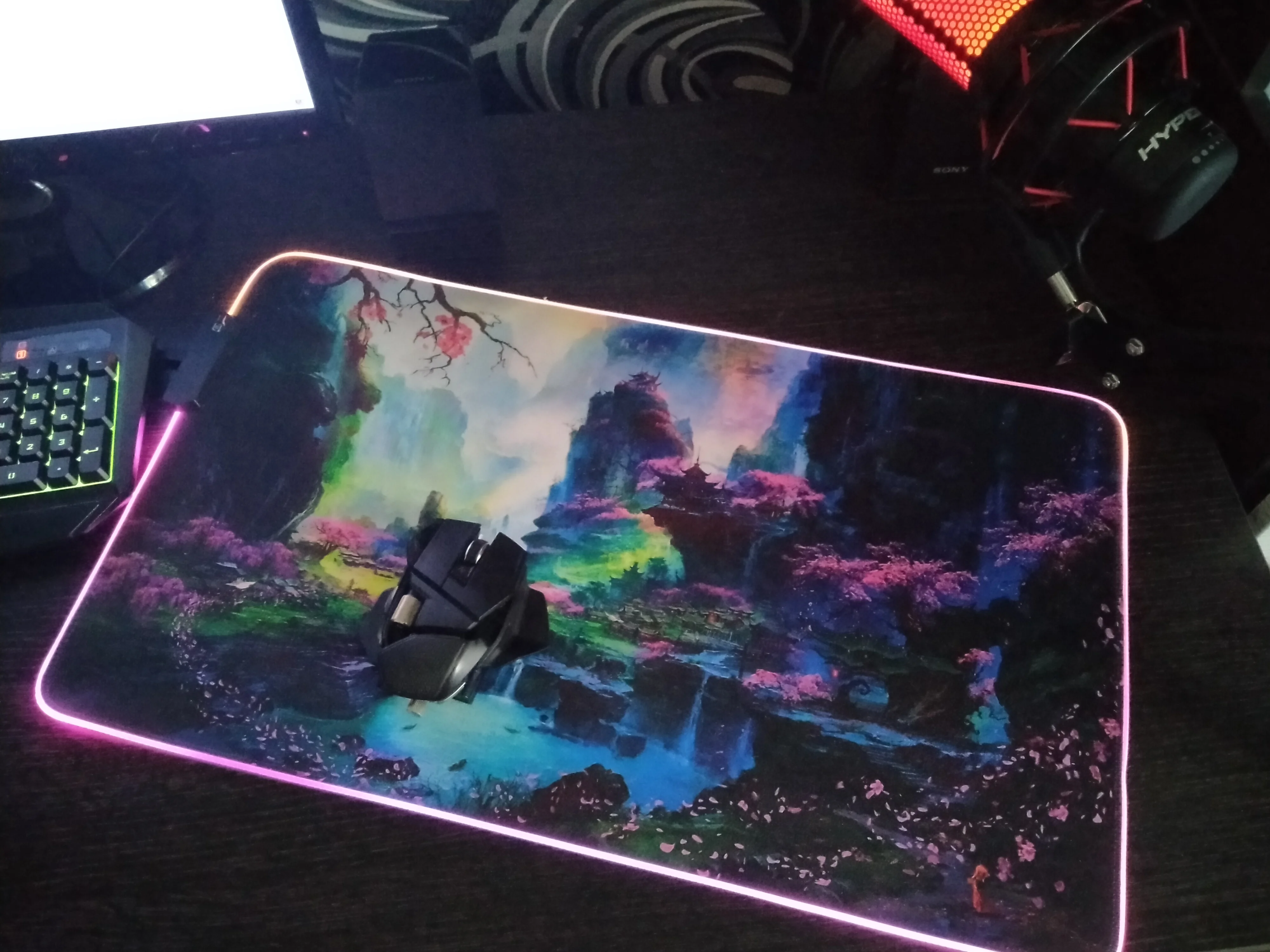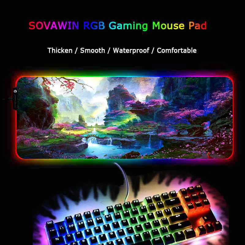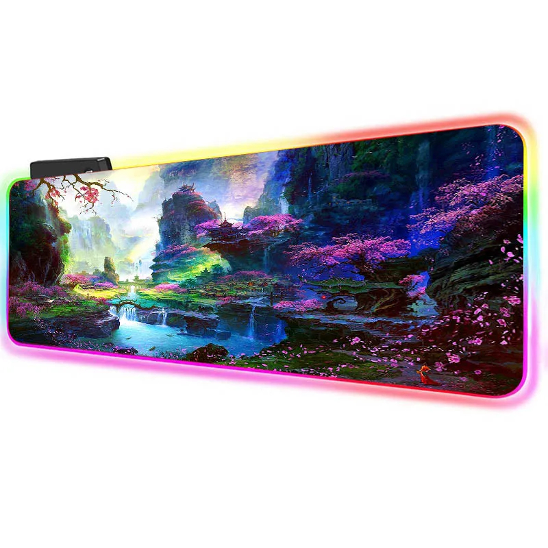 Большой игровой коврик для мыши XGZ с цветами, лесным пейзажем, RGB, геймерский компьютерный коврик для мыши со светодиодной подсветкой для клавиатуры, Настольный коврик