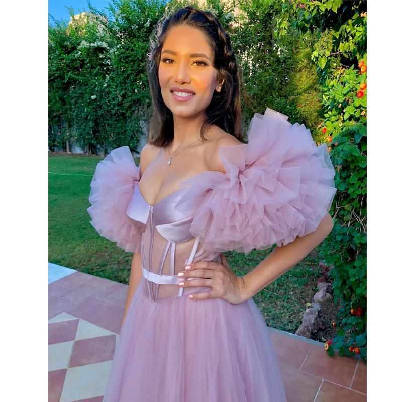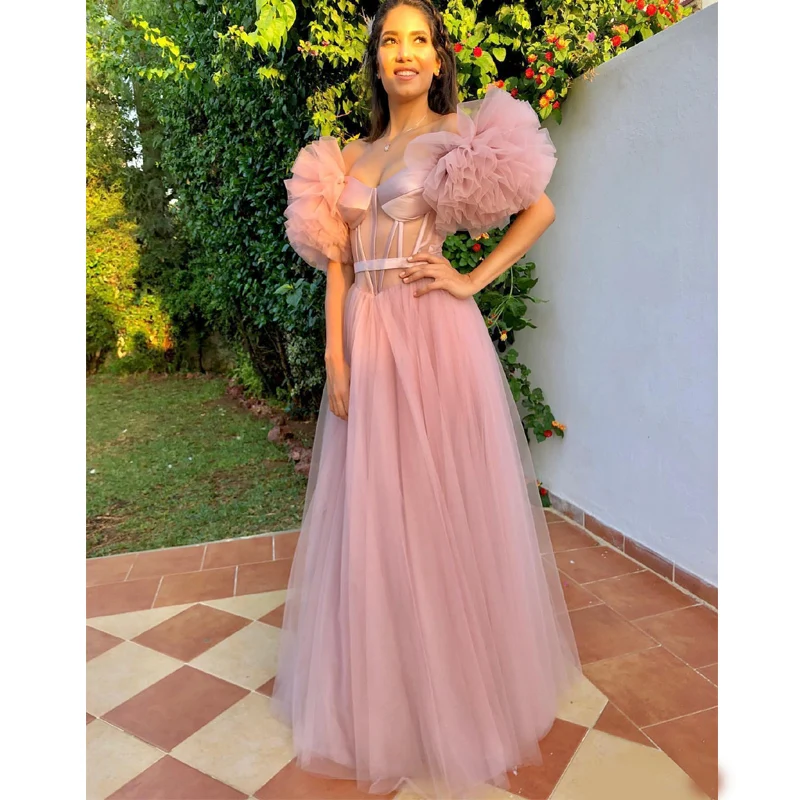 Платье для выпускного вечера с оборками и открытыми плечами Sweetehart, Прозрачный лиф, платье подружки невесты, длинное Тюлевое ТРАПЕЦИЕВИДНОЕ вечернее платье