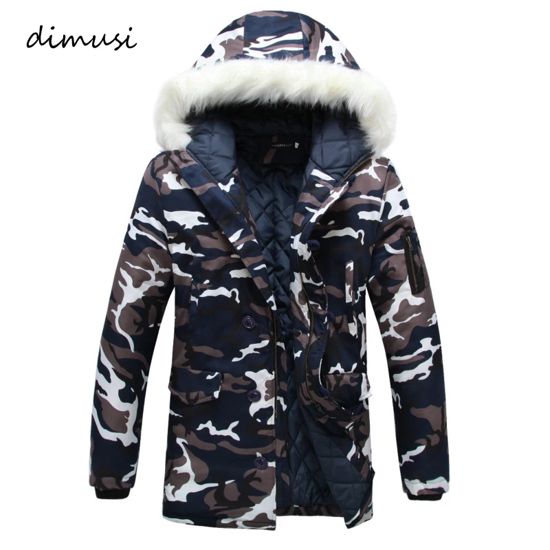 DIMUSI мужская зимняя куртка, толстая, теплая, с капюшоном, повседневная, с меховым воротником, камуфляжная, ветровка, 5XL