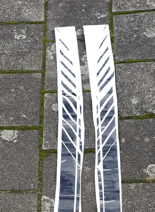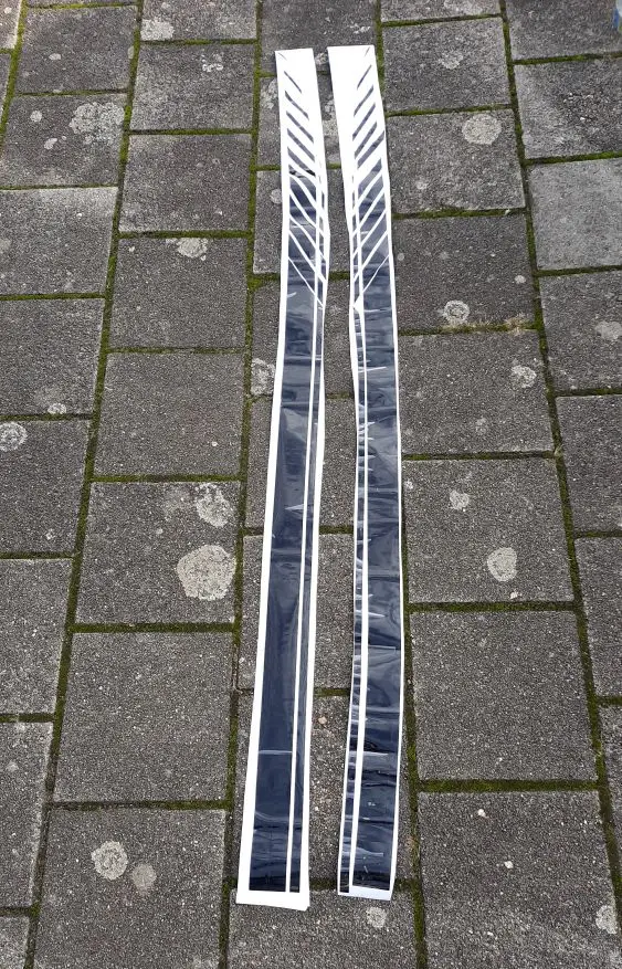 Мне наклейки пришли вот в таком виде, в мастерских клеить отказались, а где согласились цена 15$ на одну сторону. Разгладить очень проблематично. На мойке тереть тряпкой категорически нельзя, мелкие детальки отлетят сразу.