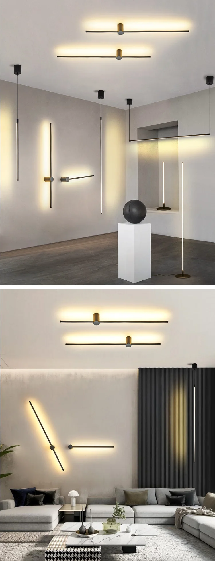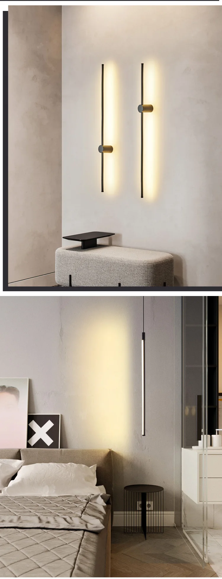 Золотойчерный современный светодиодный настенный светильник, зеркальный светильник, поверхностное крепление для гостиной, ресторана, спальни, настенный светильник L600 мм 1400 мм