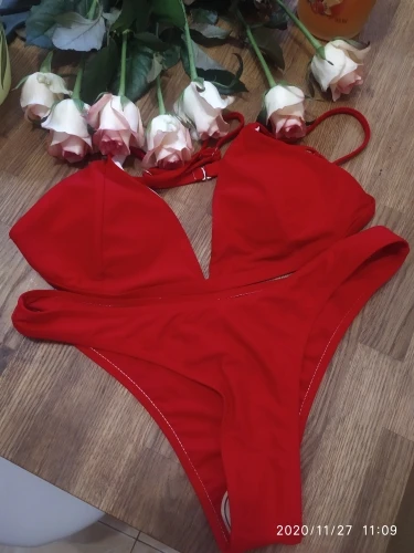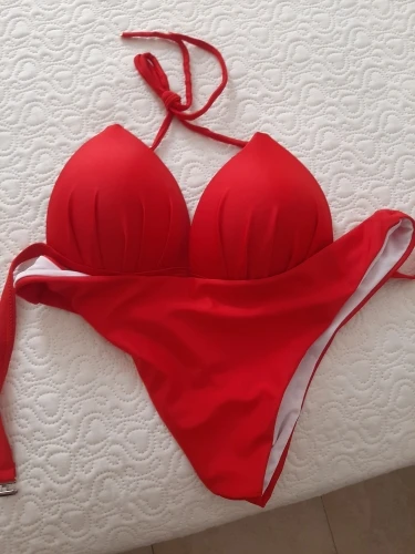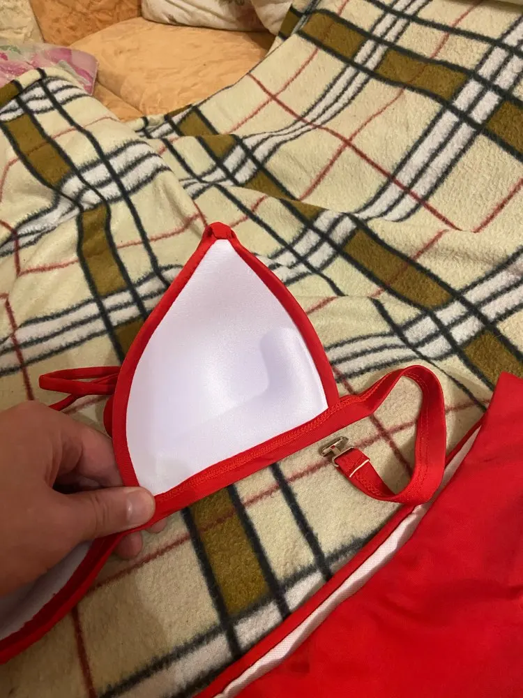 Ну, матеріал цупкий, але колір більше до фіолетового ніж до червоної чи марсала, розмір С на 86-68-89 малий, якщо плавки виглядають просто наче дуже низька посадка, аж ніяк як нафото, то чашки купальника ну дуже малі, ледь прикривають соски((( і біла підкладкану чому вона біла, вилазить з усіх боків і ніяк її не сховати