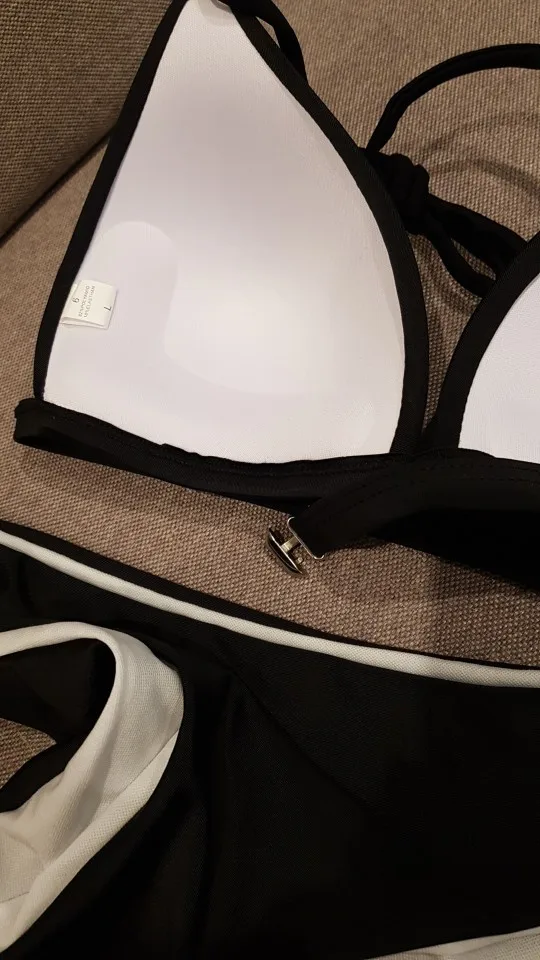 Купальник сделан качественно, строчки ровные, есть небольшой пуш ап. Из недостатков по размеру L, под грудью 80, застёжка большая, приходится завязывать. Плюс слишком близко расположены чашки и не регулируются. На ОБ 98 плавки немного большеваты, на пару см.