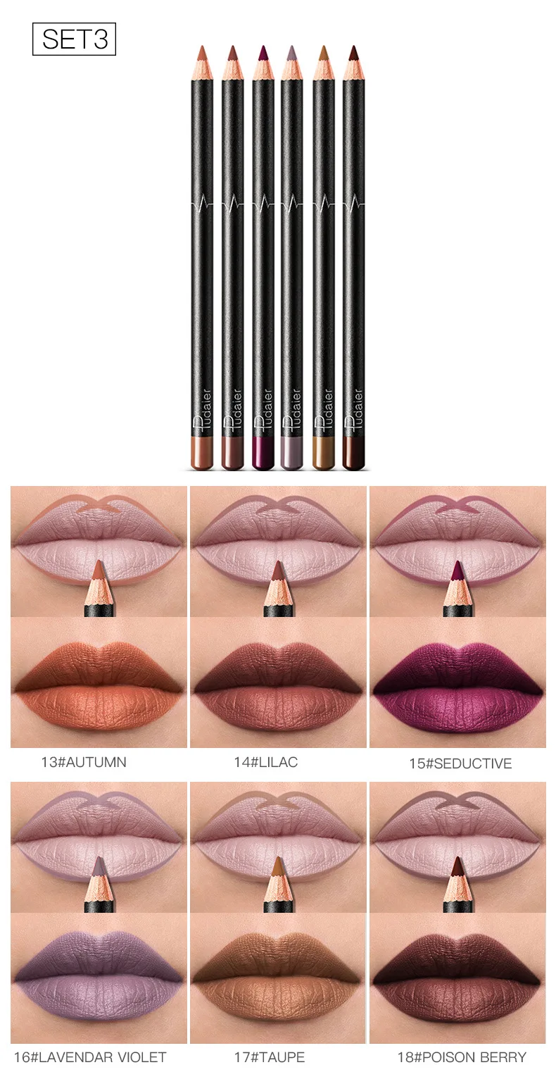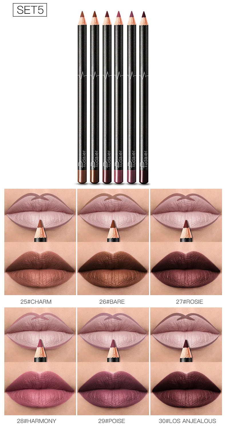 Pudaier 6 шт. косметический матовый карандаш для губ, стойкий водос...