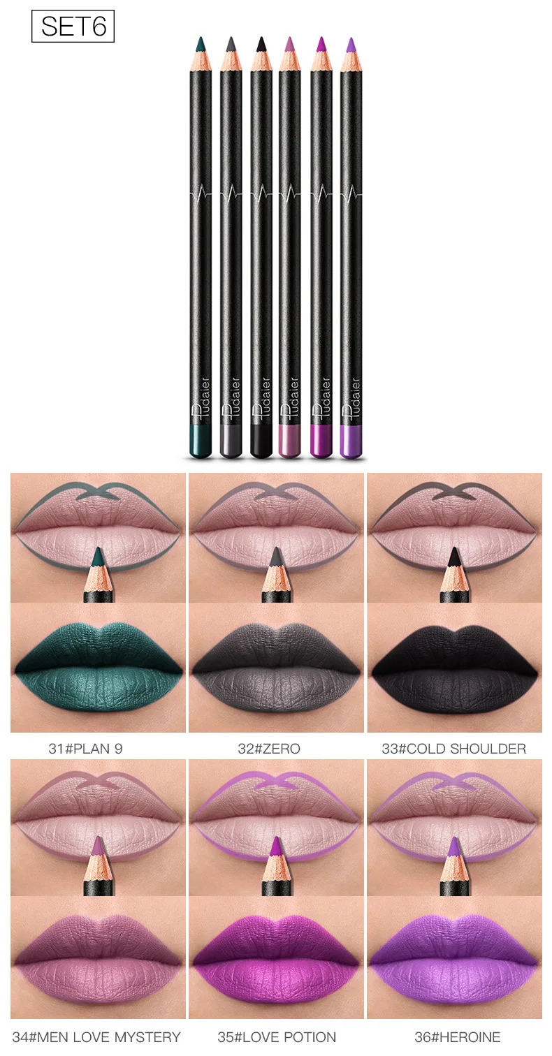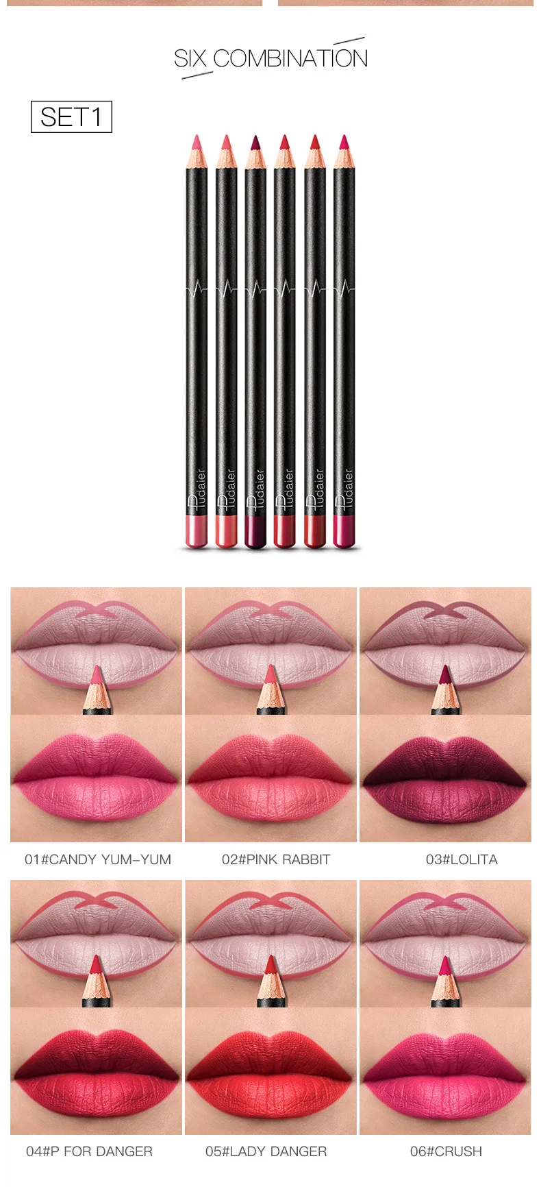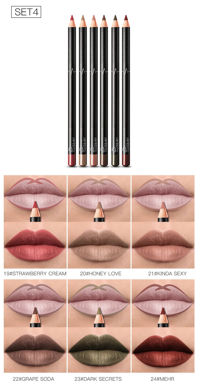 Pudaier 6 шт.набор, 6 цветов, набор для губ, матовый карандаш для г...