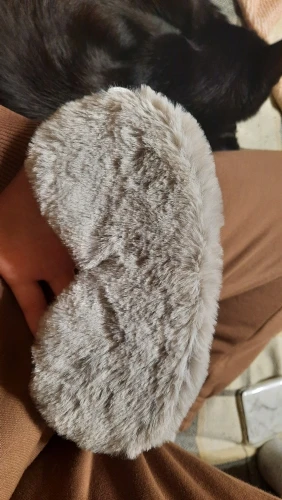 Маска очень нравится. Заказываю второй раз. Мягкая, гладкая, не давит. Я использую меховую часть на глаза. Цвет как на фото продавца. Рекомендую
