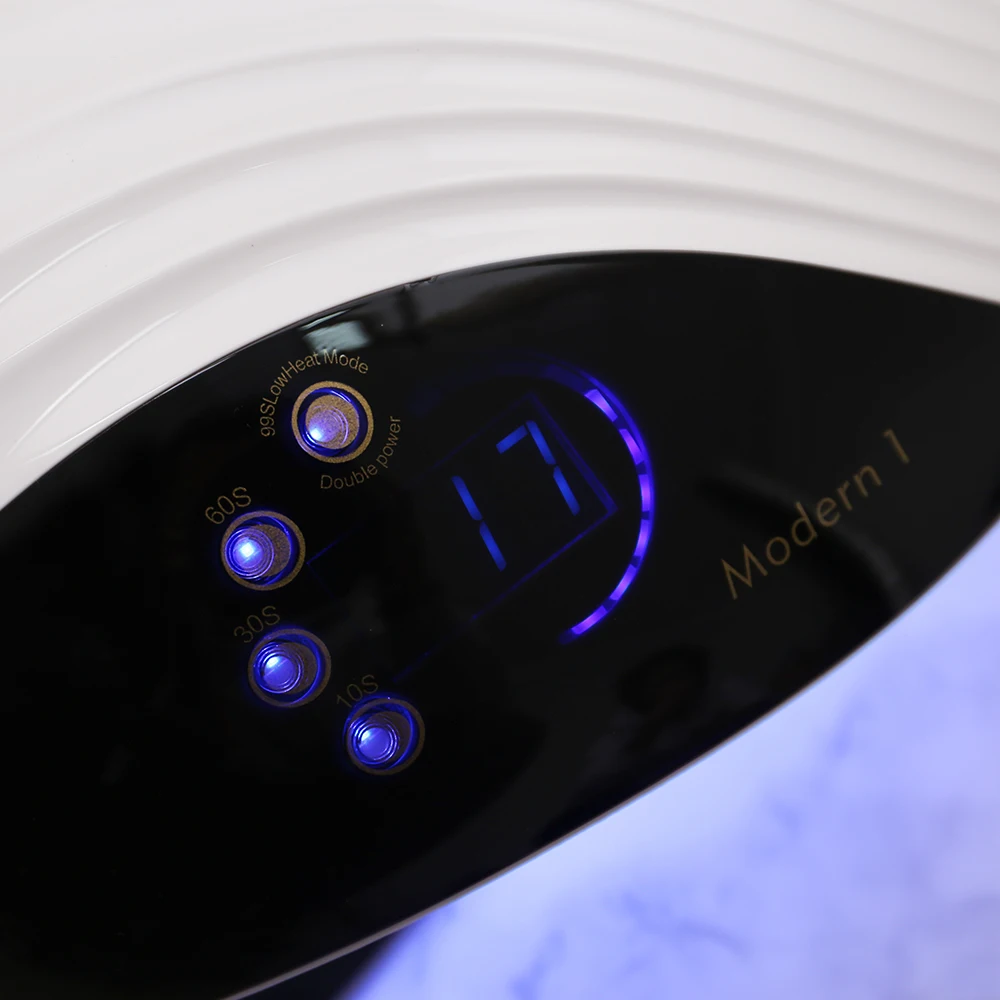 не щнаю от чего все в восторге. красивая, большая, это да. но работать с ней не удобно. первое что меня раздражает это то, что нельзя зафиксировать режим сушки. поставила я на 60 сек. клиент просушил ногти вытаскивает руку, ставит вторую и лампа включается на авторежим 120 сек, который вначале снижает мощность, а только секунд через 30 (не засекала) прибавляет мощность. т.е каждый раз нужно тыкать кнопку 60 сек. завтыкала...лови затеки, и гель убегает и топ успевает затечь или набок сползти, и вот сидишь каждый раз нужный режим включаешь. второе это глубина лампы, ну слишком. клиенты стали непросушивать большой палец систематически, он просто не достает до уф лучей. соответственно сомневаюсь в заявленной мощности. моя старушка, куда менеемощная засушивала мне кисточки которы случайно оказывались рядом с лампой. а тут в лампе не просыхают. и даже гель лак не просыхает если палец неровно положить, когда база на все 5 пальцев и вся рука сохнет сразу, большой палец вообще не сохнет.