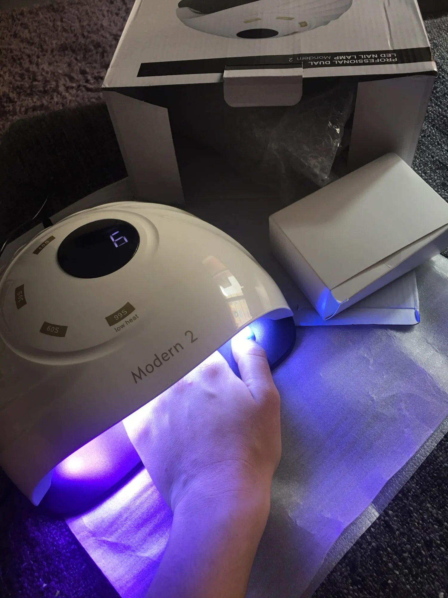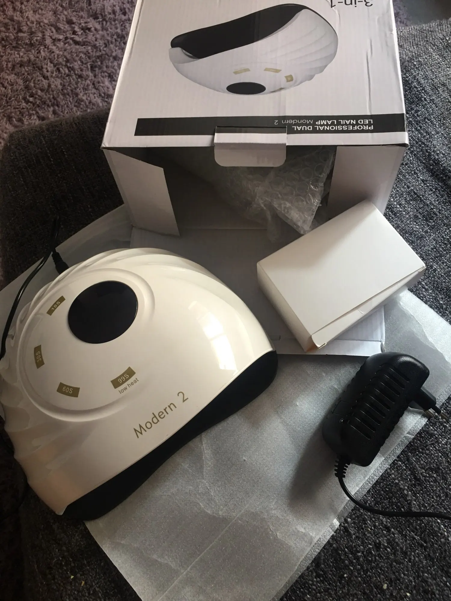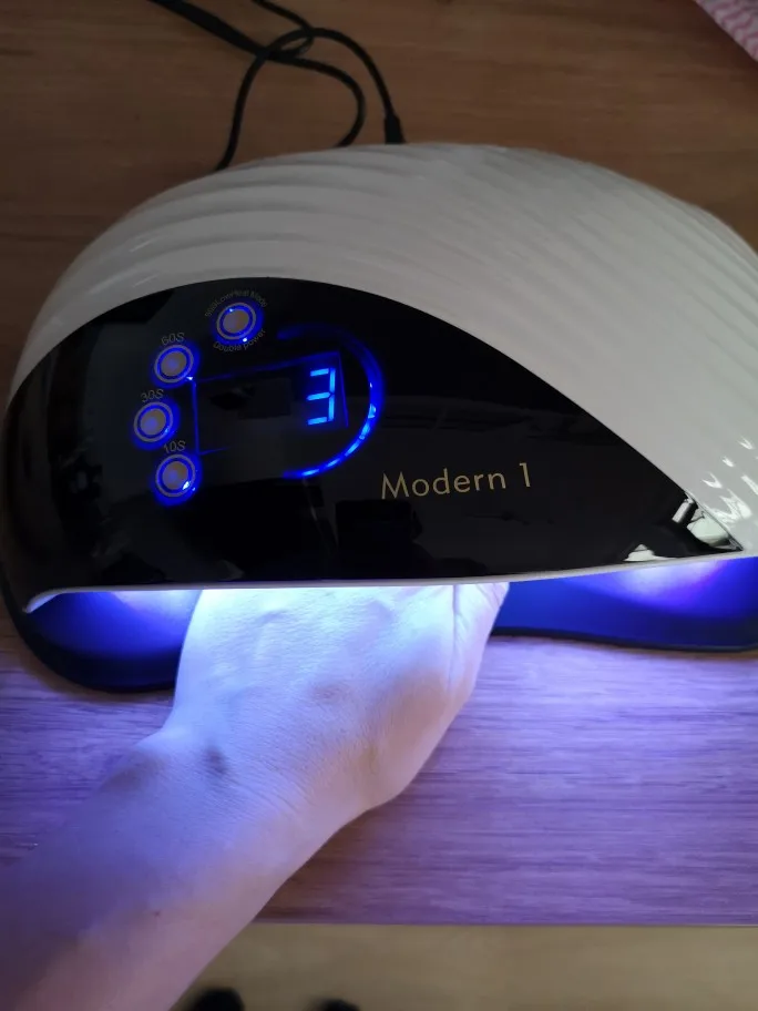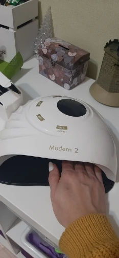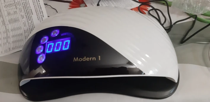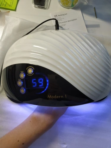 Лампа хорошая, на две руки, очень удобная, единственное не удобство когда ставит клиентка руку сама не включается, работает вентилятор обдува, просушивает хорошо и что ещё важно шнур не такой короткий как у предыдущих заказанных мною ламп. Пока очень довольна, посмотрим в работе.