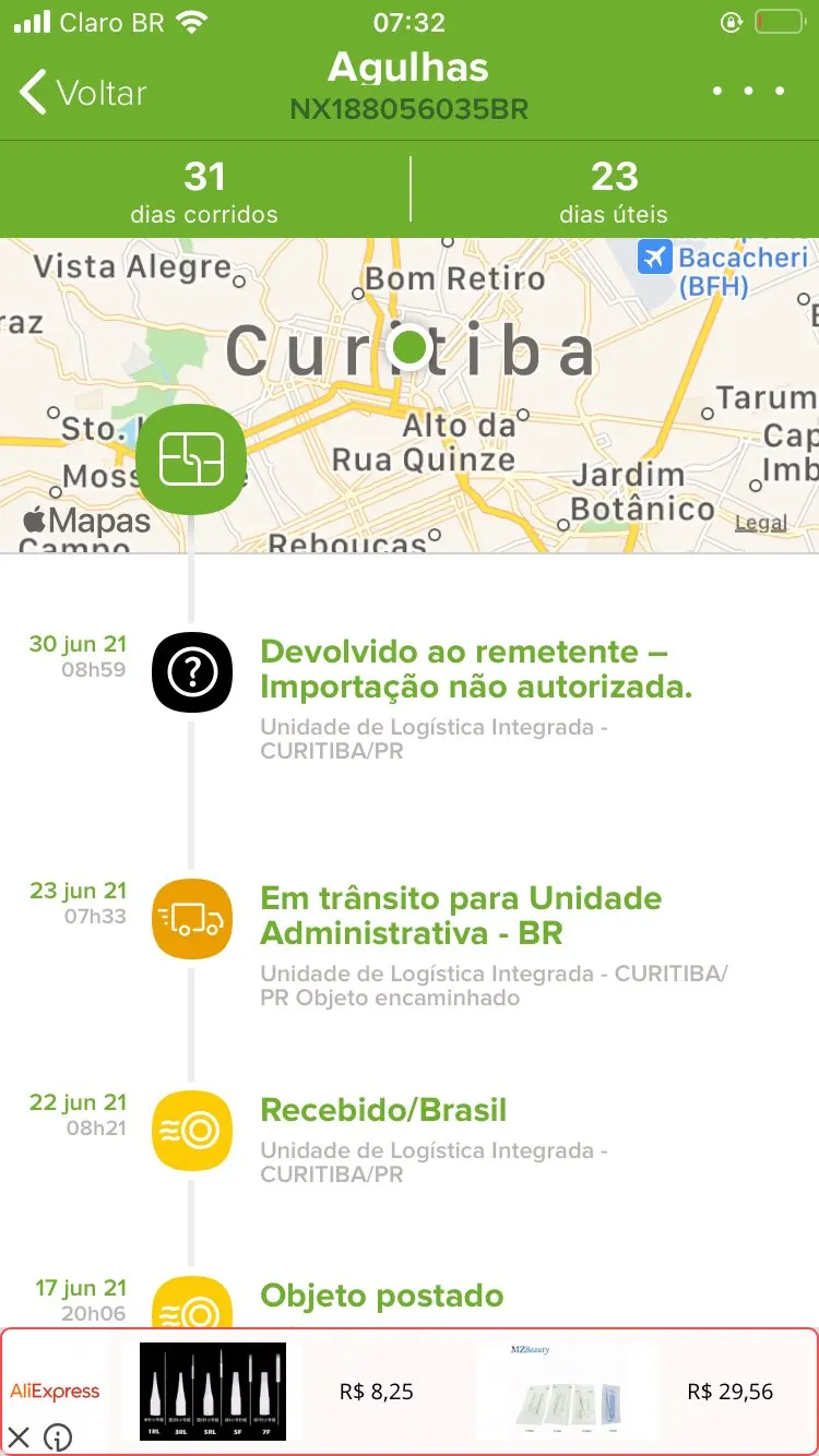 К сожалению, мой запрос был возвращен продавцу бразильской таможни, я связался с тем же и даже отвечаю, и TBM вернул деньги, а не купил! Купил dermógrafo TBM, возвращенный с другим продавцом, и он был готов решить, это не имеет значения!