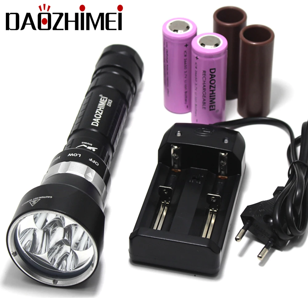 Светодиодный фонарик XM-L L2 для дайвинга, 8000 Люмен, водонепроницаемый фонарь для работы под водой, фонарик для дайвинга с 2 батареями 26650 и зарядным устройством