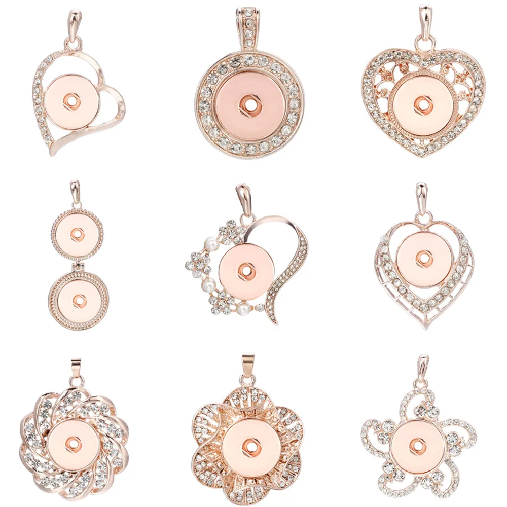 Новая оснастка кулон ожерелье Стразы ожерелье под розовое золото подходит 18 мм оснастка Кнопка Мода оснастка ювелирные изделия