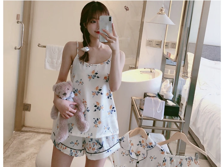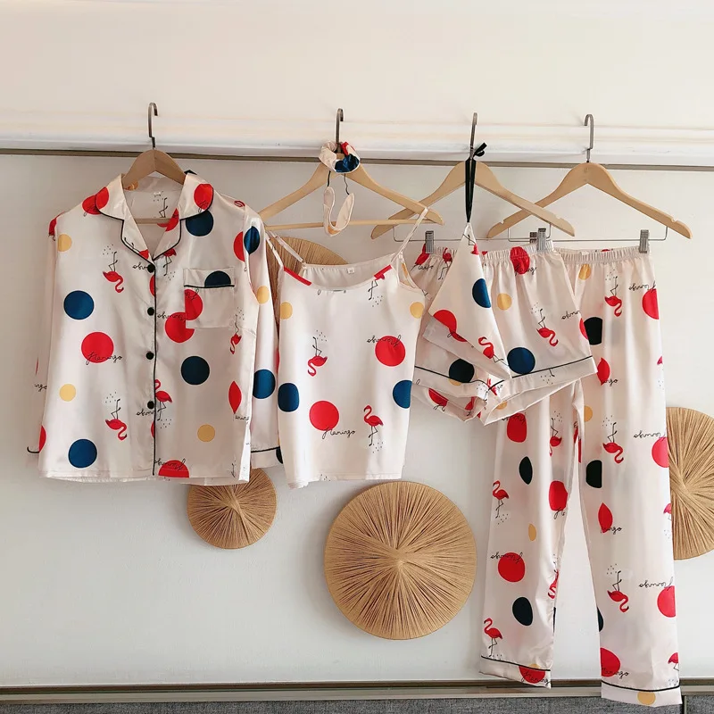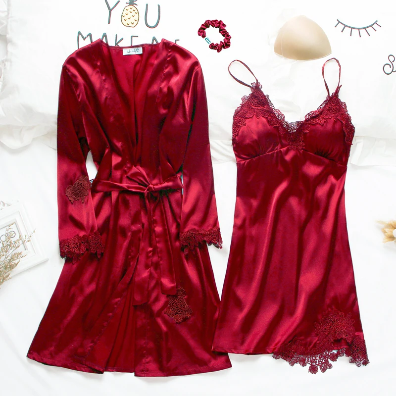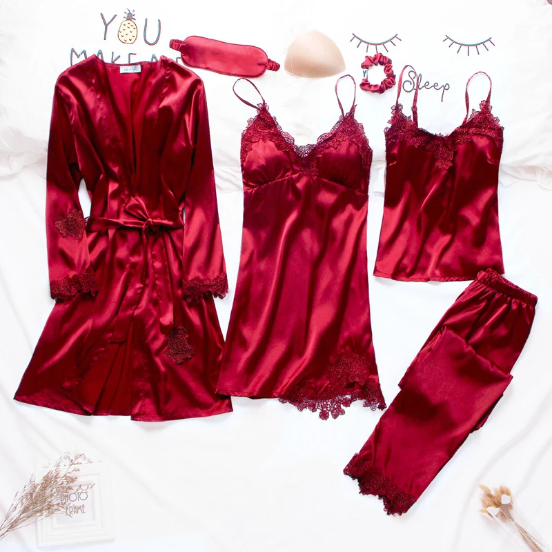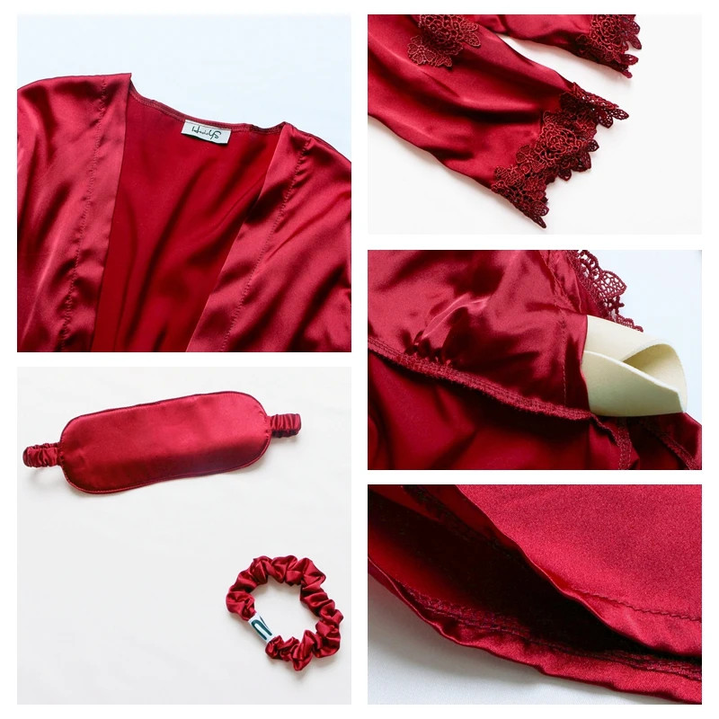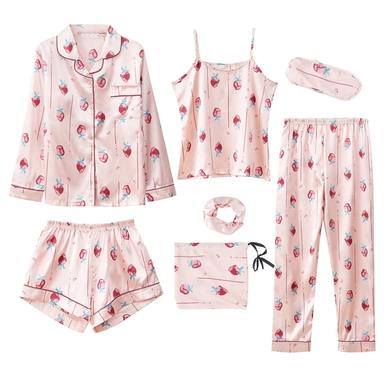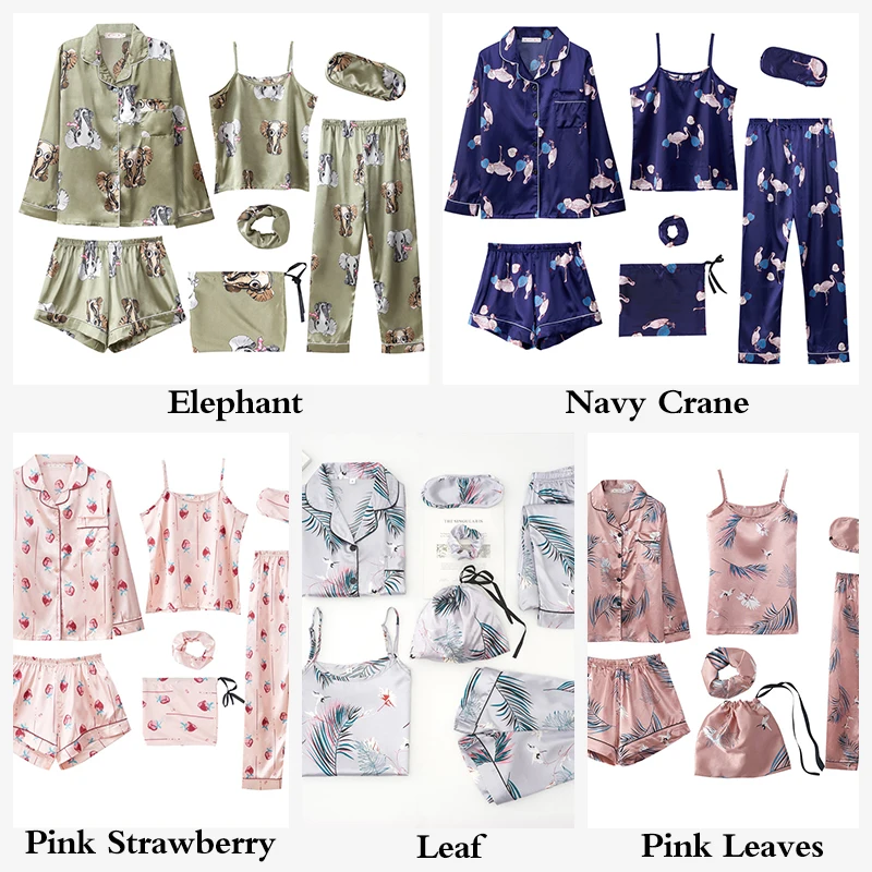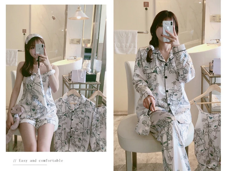 Пижама женская атласная с вышивкой, пижамный комплект из 3 и 7 предметов, одежда для сна, шелковая Домашняя одежда, для сна и отдыха, с нагрудными подушечками