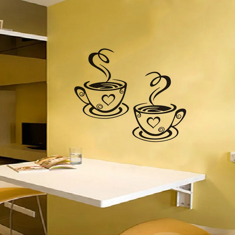 Домашняя кофейня, настенная наклейка, Два кофе, виниловые настенные наклейки, искусство, слова, настенные фрески, кухонные декоративные наклейки