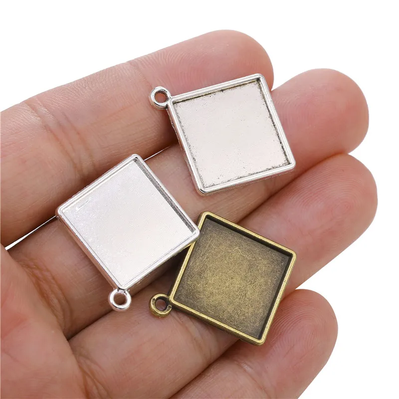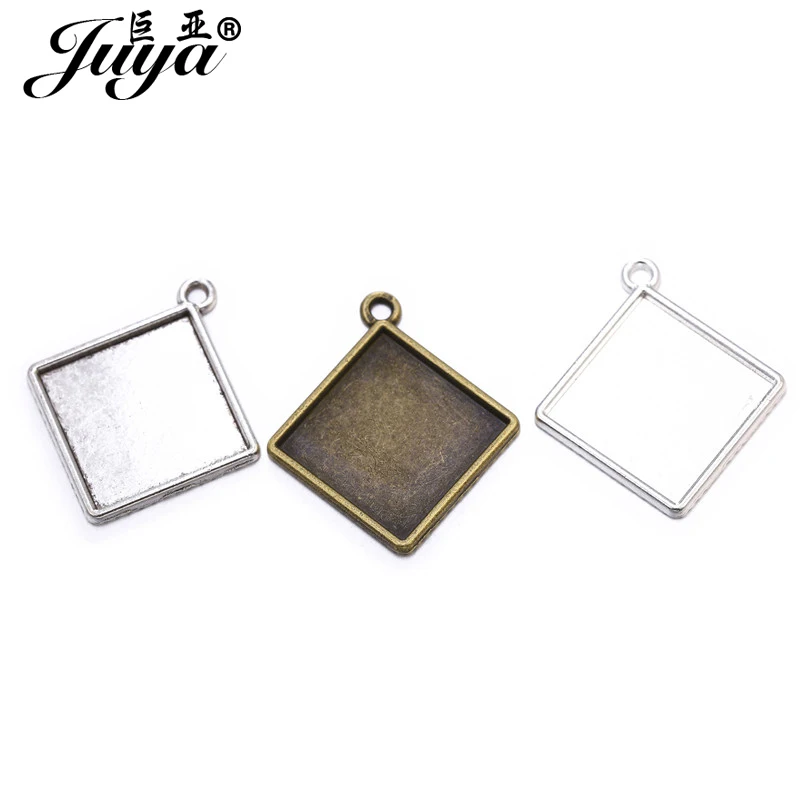 50 шт 25 мм сплав квадратная подвеска кабошон основа Настройка Подв...