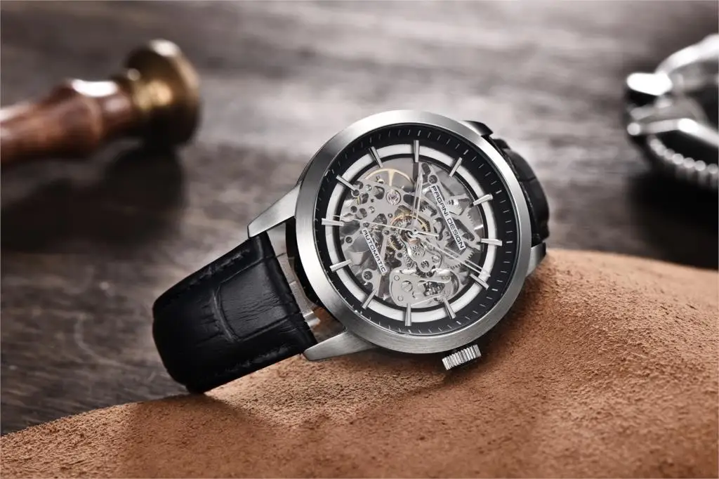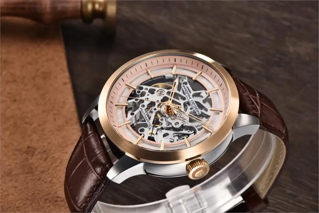 Часы-скелетоны PAGANI Мужские механические, с кожаным ремешком