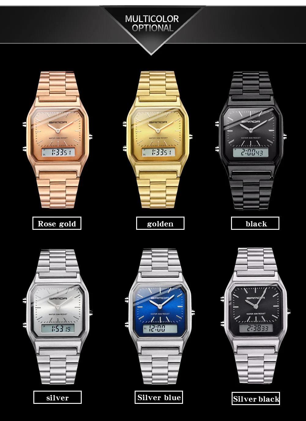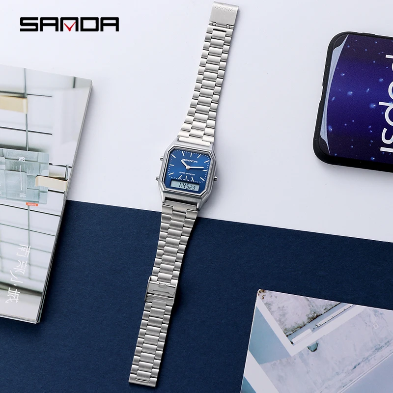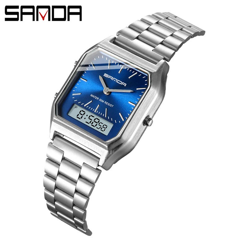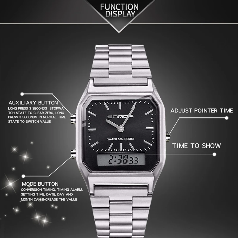 SANDA Лидирующий бренд, Роскошные Кварцевые женские часы, ремешок из нержавеющей стали, модные часы, светодиодные часы, мужские деловые наручные часы, Reloj hombre