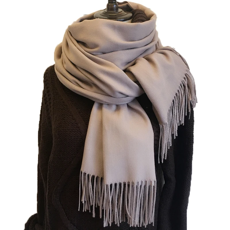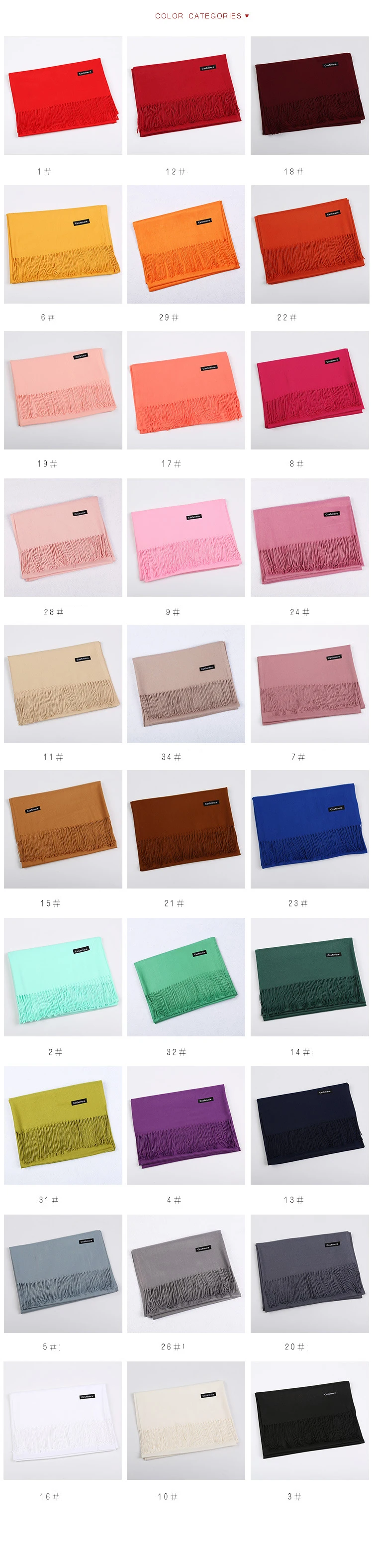 Женский Зимний шарф, однотонный плотный кашемировый шарф, Зимний теплый хиджаб из пашмины, 2021