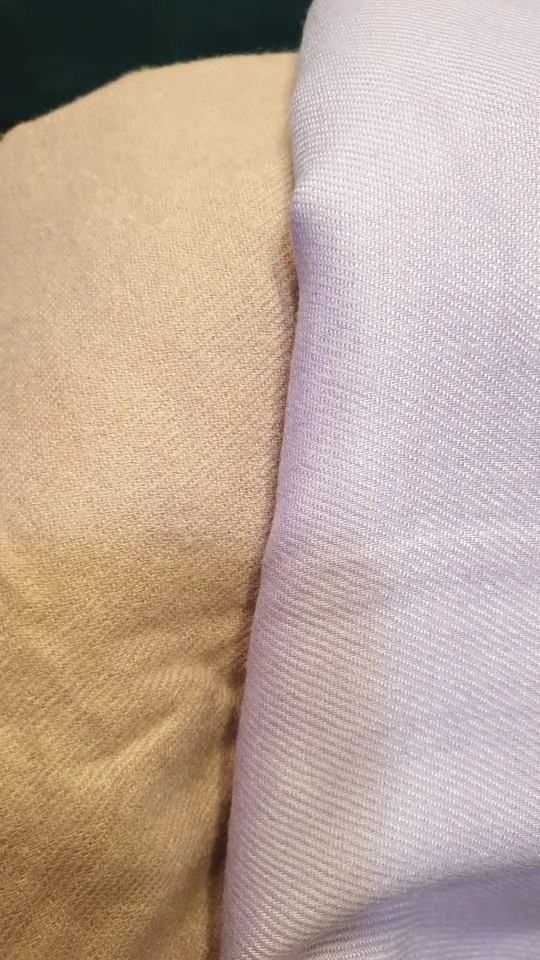 Купила 2 шарфа. По качеству оказались разные. Темный цвет более шелковистый.