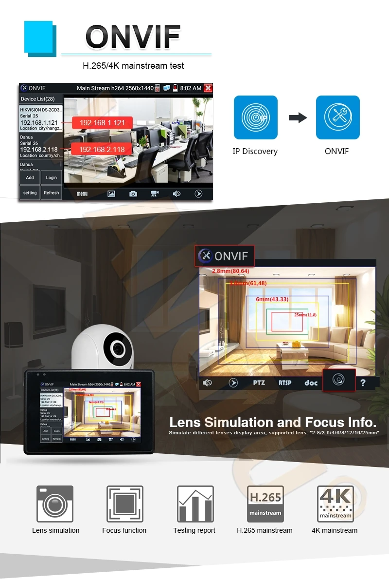 ● Быстрый ONVIF, автоматическое просмотр видео и создание отчета о тестировании