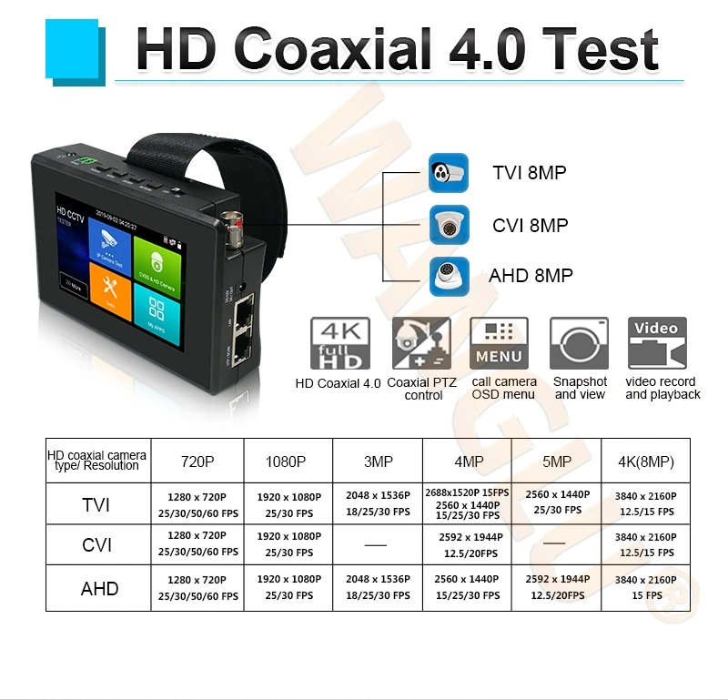Пожалуйста, обратите внимание, что этот тестер CCTV был модернизирован для поддержки: