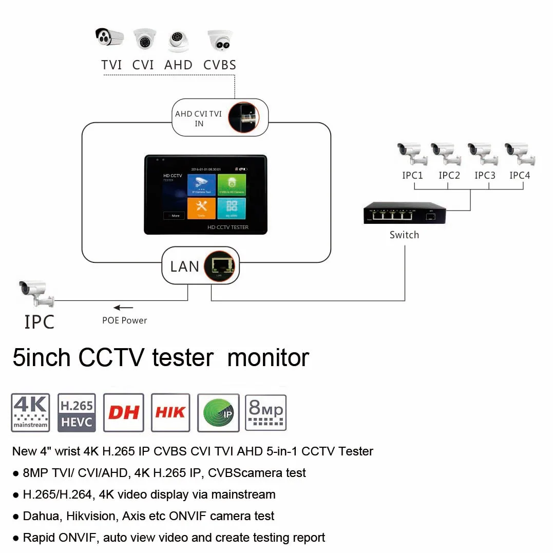 Новый 4 "наручные 4K H.265 IP CVBS TVI CVI AHD 5-в-1 CCTV тестер