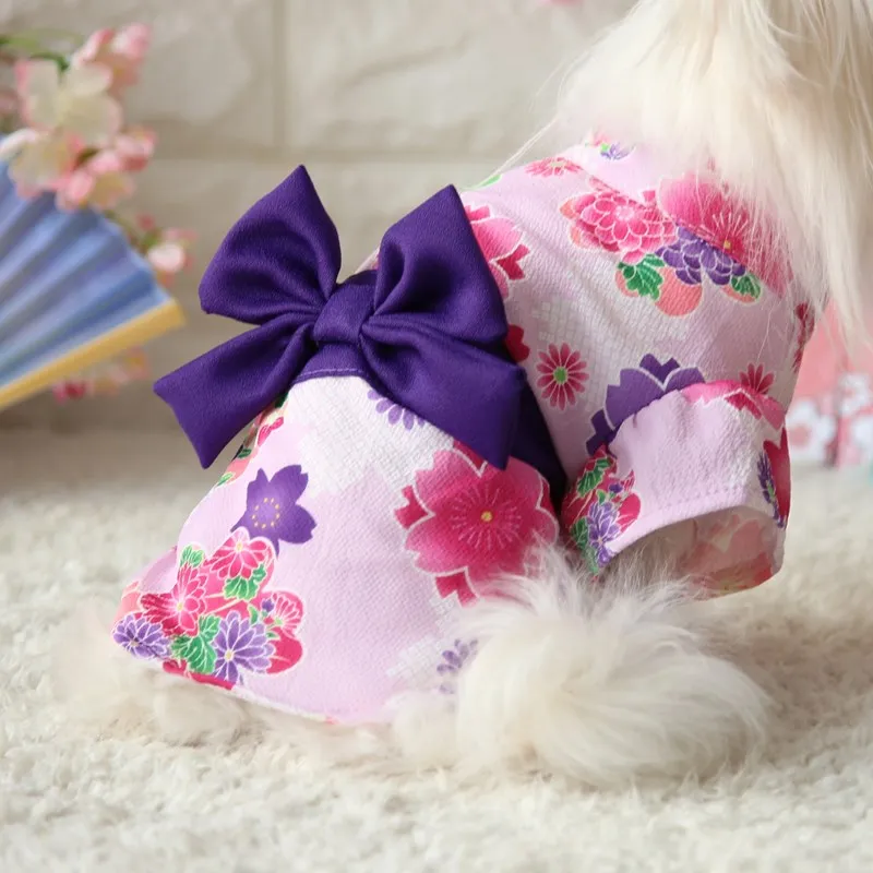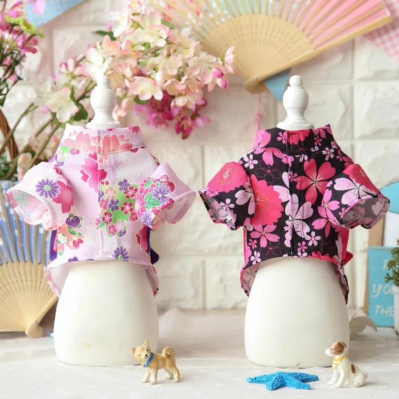 Японское кимоно для питомца, пуделя кошки, цветущий Вишневый халат, кимоно с Сакурой, платье, юбка для щенка, Китти, с цветами, одежда для питомца на весну и лето