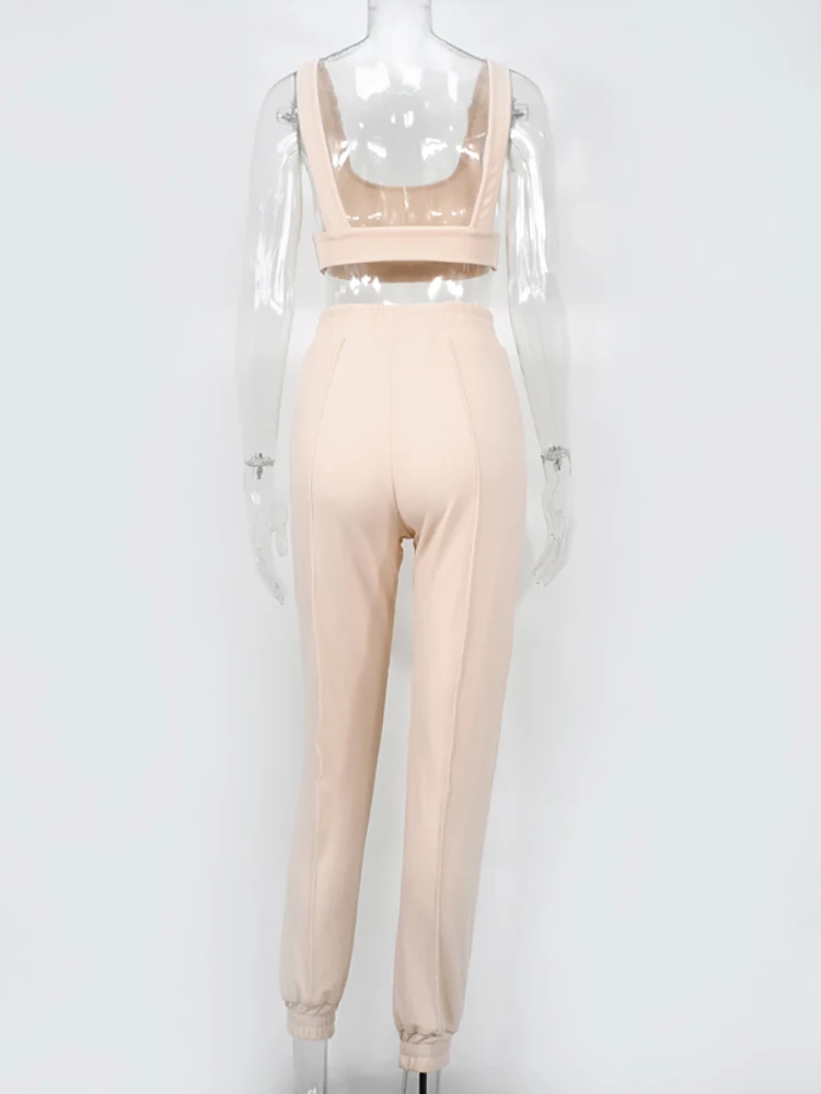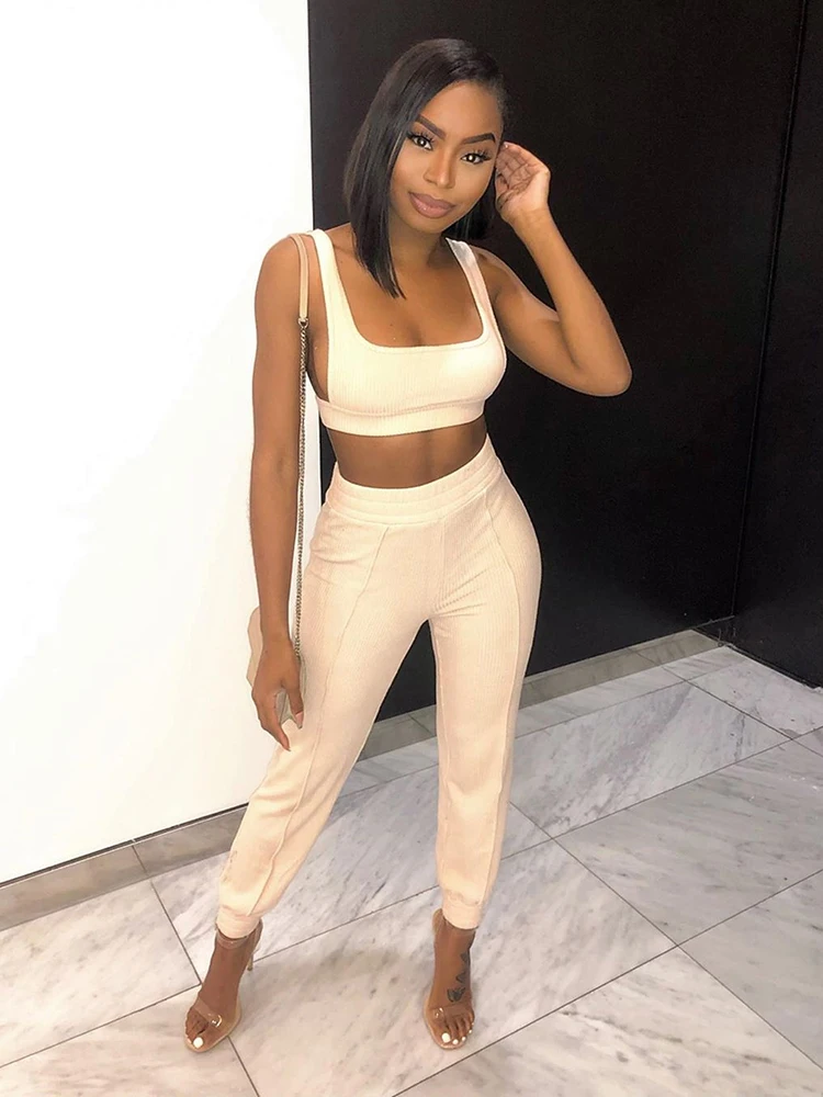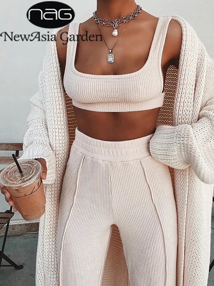 Женский комплект из 2 предметов NewAsia, белый комплект из двух предметов в рубчик без рукавов, укороченный топ, длинные штаны, весенний сексуальный повседневный комплект